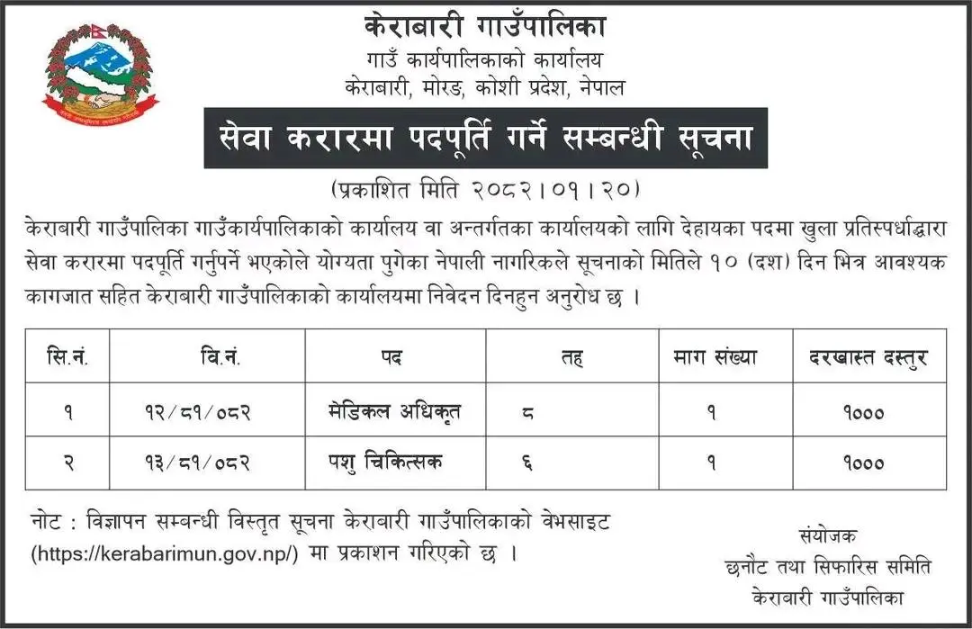 Vacancy for Medical Officer, Veterinarian